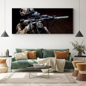 Impression sur toile - Image sur toile - Un soldat en équipement complet avec un fusil - 50x70cm - Meurtrier efficace - Décoration murale moderne pour le salon et la chambre ARTTOR