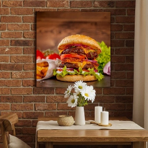 Impression sur toile - Image sur toile - Burger appétissant avec extras - 70x100cm - Le fruit défendu - Décoration murale moderne pour le salon et la chambre ARTTOR