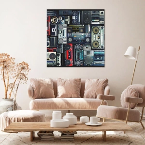 Impression sur toile - Image sur toile - Un collage de magnétophones rétro et d'enceintes vintage. - 50x70cm - Nostalgie des années 80 - Décoration murale moderne pour le salon et la chambre ARTTOR