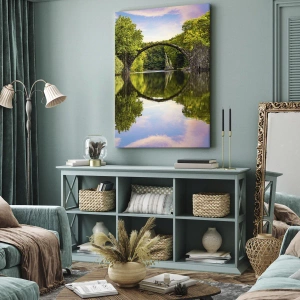 Impression sur toile - Image sur toile - Un pont de pierre sur une rivière avec un reflet parfait dans l'eau - 50x70cm - À la jonction de deux mondes - Décoration murale moderne pour le salon et la chambre ARTTOR