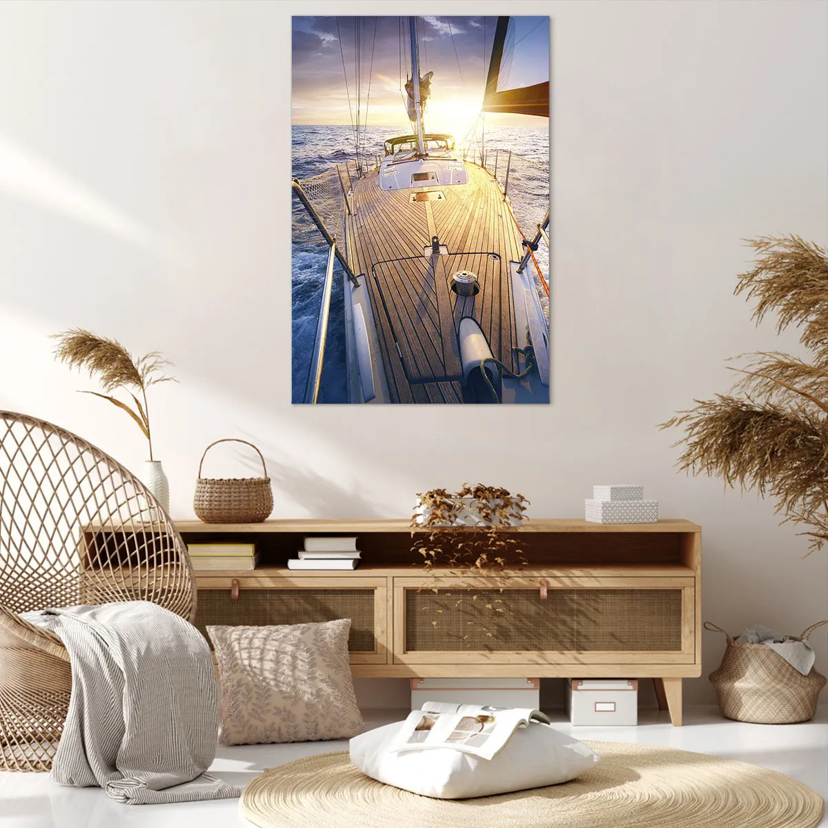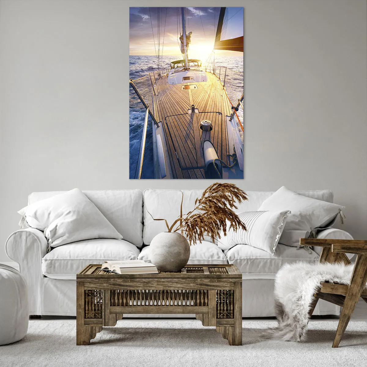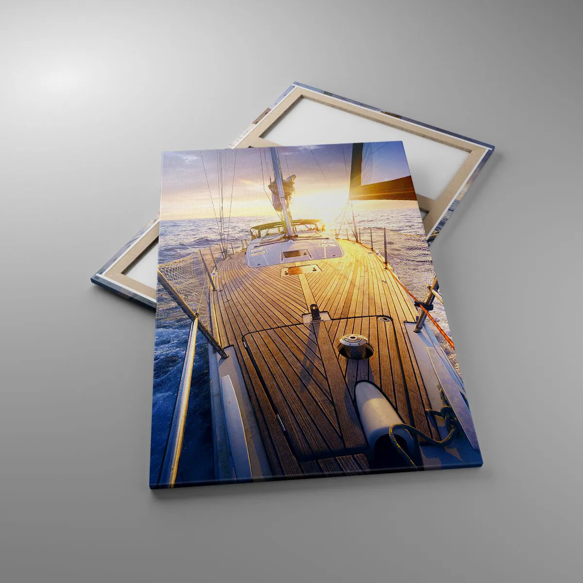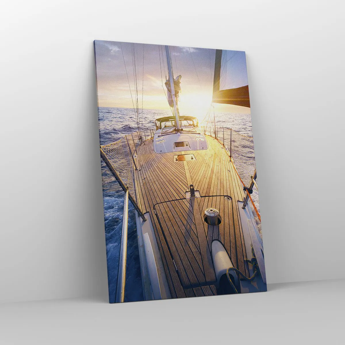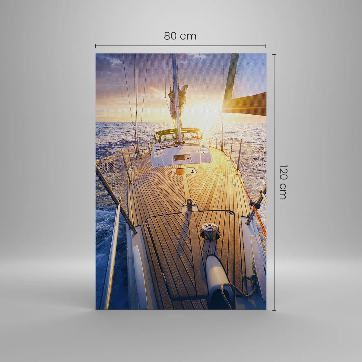 Impression sur toile - Image sur toile - Yacht en mer au coucher du soleil - 80x120cm - Courir sur les vagues - Décoration murale moderne pour le salon et la chambre ARTTOR