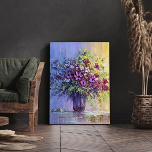 Impression sur toile - Image sur toile - Un bouquet de fleurs colorées dans un vase sur un fond dégradé - 50x70cm - Cadeau d'été de la prairie - Décoration murale moderne pour le salon et la chambre ARTTOR