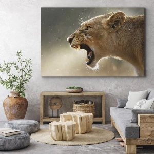Impression sur toile - Image sur toile - Portrait d'une lionne rugissante à la lumière naturelle - 70x100cm - Essayez de ne pas écouter - Décoration murale moderne pour le salon et la chambre ARTTOR