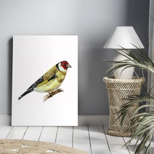 Impression sur toile - Image sur toile - Un oiseau à tête rouge sur une branche - 80x120cm - Portrait d'oiseau - Décoration murale moderne pour le salon et la chambre ARTTOR