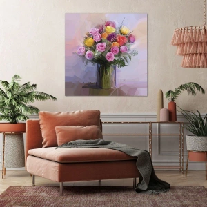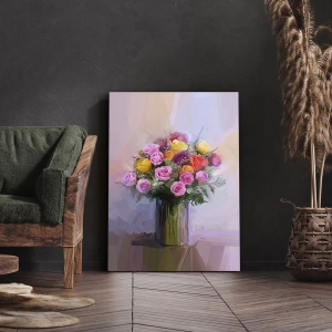 Impression sur toile - Image sur toile - Un bouquet de roses colorées dans un vase en verre - 50x70cm - Beauté conservée - Décoration murale moderne pour le salon et la chambre ARTTOR