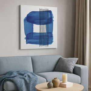 Impression sur toile - Image sur toile - Motif abstrait dans des tons de bleu avec des lignes noires - 50x70cm - Composition noire-bleue - Décoration murale moderne pour le salon et la chambre ARTTOR