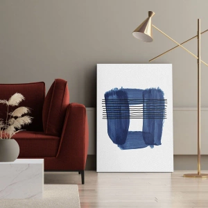 Impression sur toile - Image sur toile - Motif abstrait dans des tons de bleu avec des lignes noires - 70x100cm - Composition noire-bleue - Décoration murale moderne pour le salon et la chambre ARTTOR