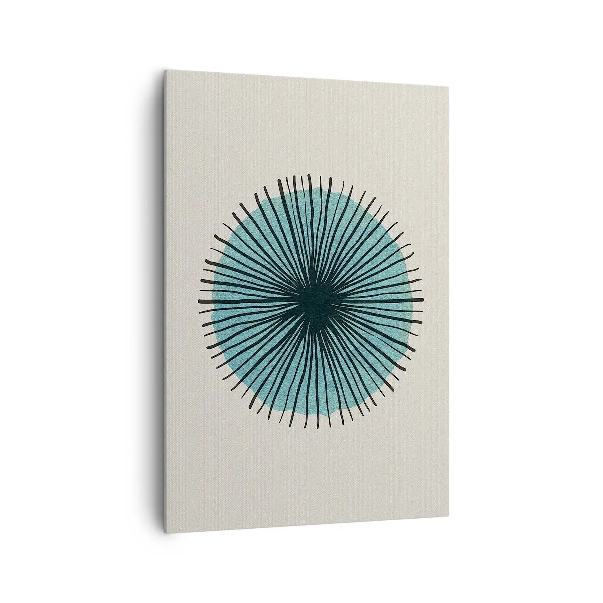 Impression sur toile - Image sur toile - Forme circulaire abstraite avec des rayons bleus - 70x100cm - Rayonnant dans l'azur - Décoration murale moderne pour le salon et la chambre ARTTOR