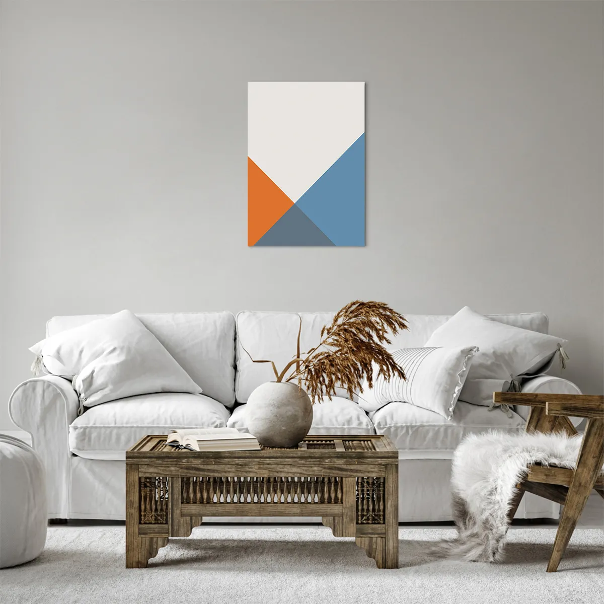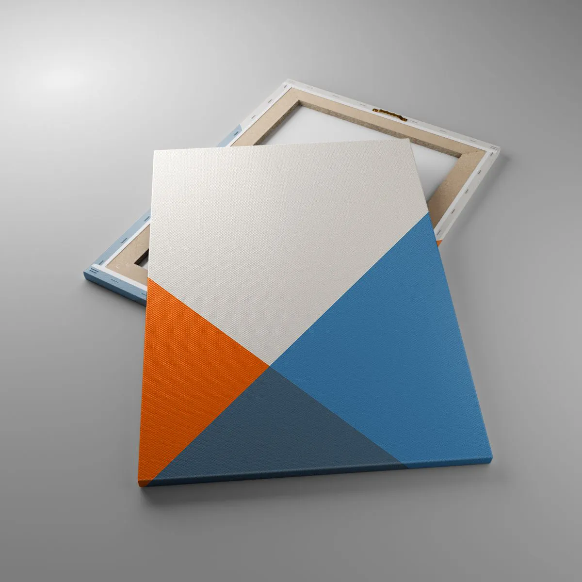 Impression sur toile - Image sur toile - Triangles géométriques dans les tons de bleu et d'orange - 50x70cm - Sous cette angle.... - Décoration murale moderne pour le salon et la chambre ARTTOR