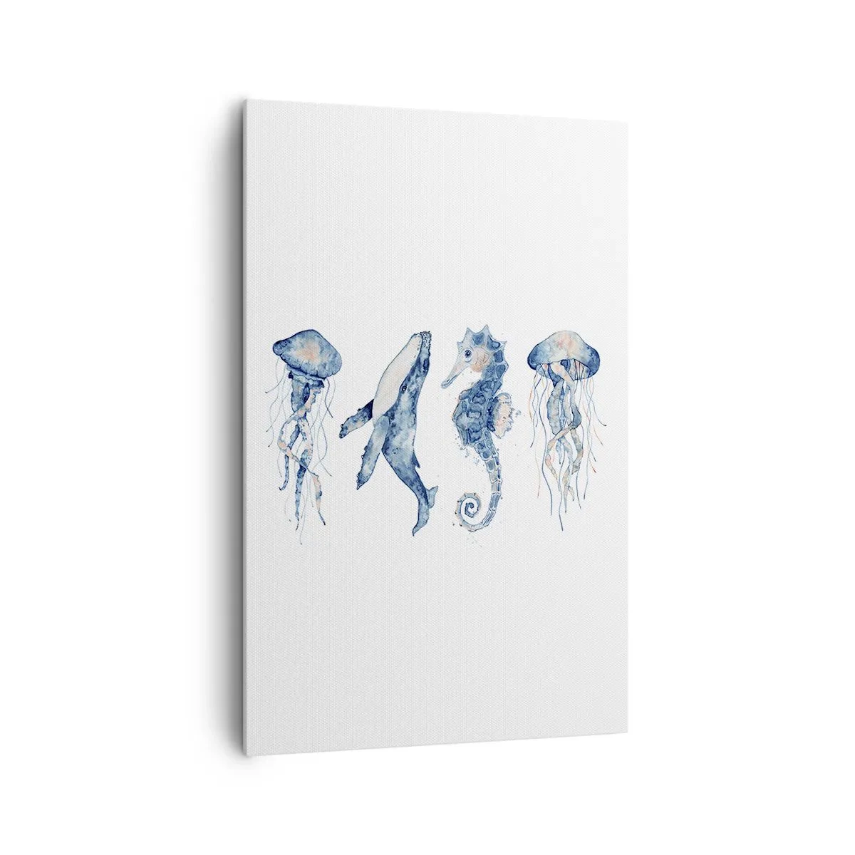 Impression sur toile - Image sur toile - Méduse, baleine et hippocampe dans un style aquarelle - 80x120cm - Merveilles de la mer - Décoration murale moderne pour le salon et la chambre ARTTOR