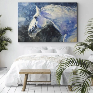 Impression sur toile - Image sur toile - Portrait d'un cheval dans des tons de bleu avec un effet aquarelle pictural. - 50x70cm - Portrait dans une lueur azur - Décoration murale moderne pour le salon et la chambre ARTTOR