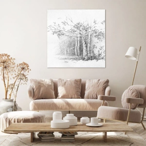 Impression sur toile - Image sur toile - Un dessin d'une forêt de bouleaux dans un croquis au crayon subtil - 70x100cm - Lumière d'une forêt de bouleaux - Décoration murale moderne pour le salon et la chambre ARTTOR