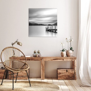 Impression sur toile - Image sur toile - Paysage noir et blanc avec une jetée sur un lac - 70x100cm - Douceur et force - Décoration murale moderne pour le salon et la chambre ARTTOR