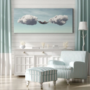 Impression sur toile - Image sur toile - Une personne se détendant dans un hamac suspendu dans les nuages - 70x100cm - Instant de bonheur - Décoration murale moderne pour le salon et la chambre ARTTOR
