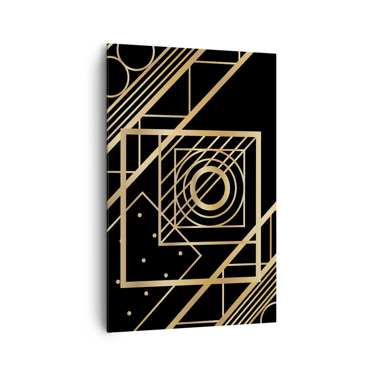 Impression sur toile - Image sur toile - Motifs géométriques dorés sur fond noir - 80x120cm - Géométrie en or - Décoration murale moderne pour le salon et la chambre ARTTOR
