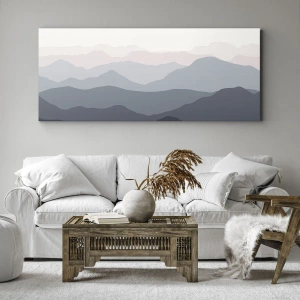 • Ce tableau représente de délicates couches de montagnes dans des tons pastel de gris et de bleu. Parfait pour les intérieurs minimalistes, il apporte harmonie et tranquillité. Réalisé sur une toile de haute qualité, il constitue une élégante décoration...