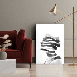 Impression sur toile - Image sur toile - Portrait noir et blanc d'une femme avec un effet rayé surréaliste - 50x70cm - Portrait surréaliste - Décoration murale moderne pour le salon et la chambre ARTTOR