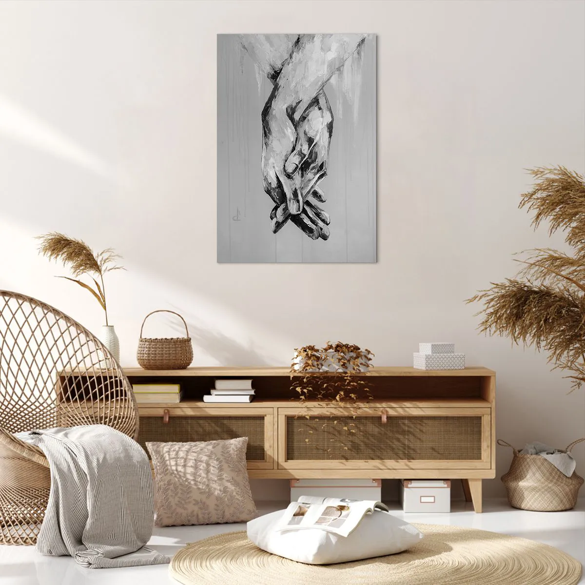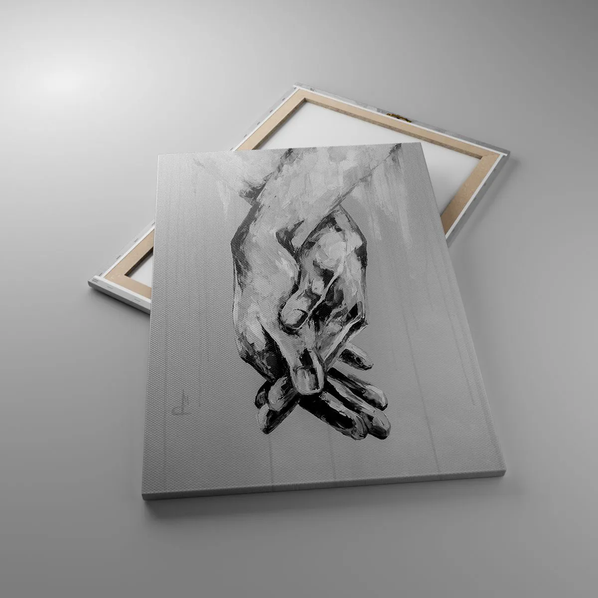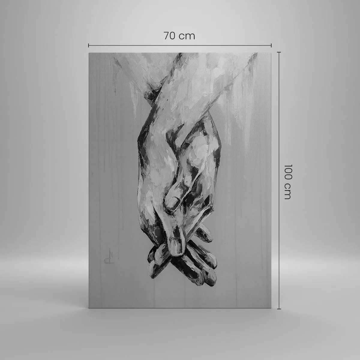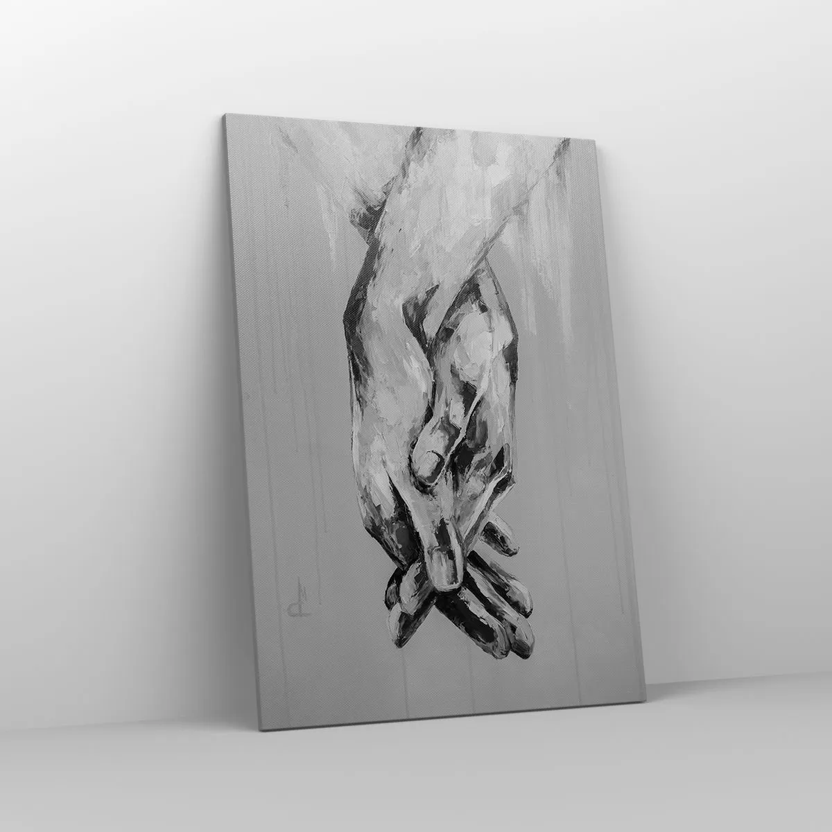 Impression sur toile - Image sur toile - Une composition en noir et blanc de deux mains jointes sur un fond clair. - 70x100cm - Début... - Décoration murale moderne pour le salon et la chambre ARTTOR