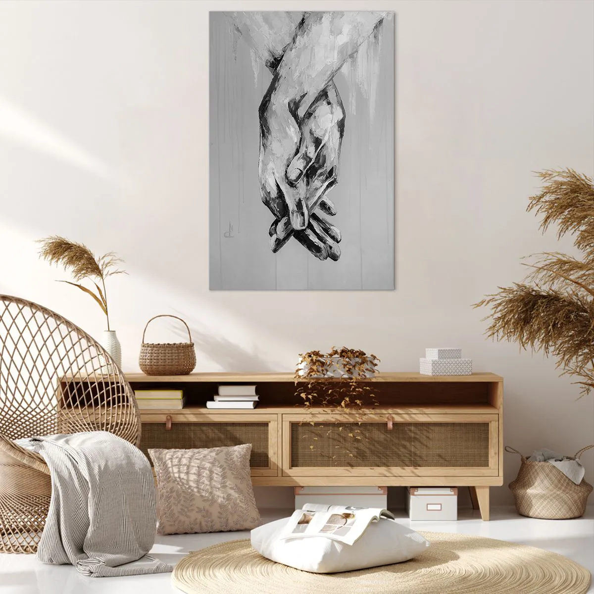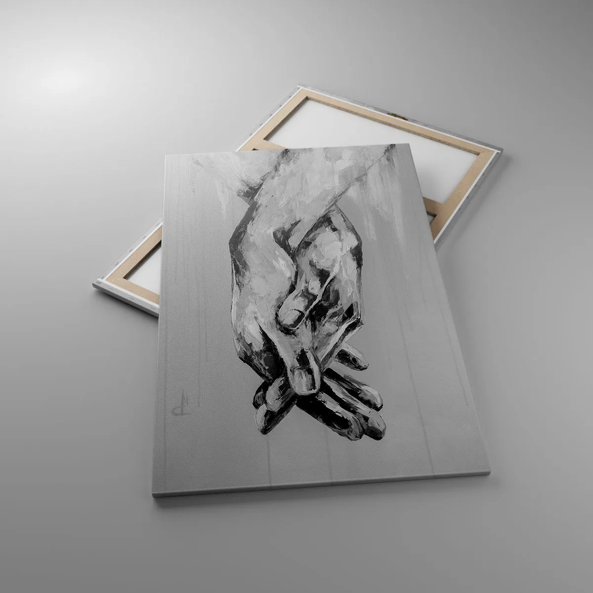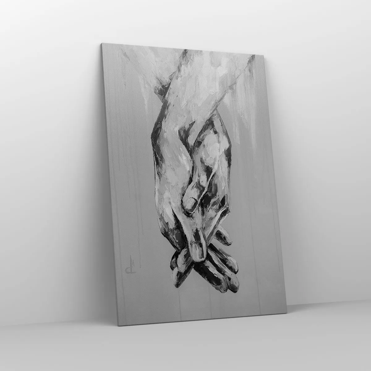 Impression sur toile - Image sur toile - Une composition en noir et blanc de deux mains jointes sur un fond clair. - 80x120cm - Début... - Décoration murale moderne pour le salon et la chambre ARTTOR