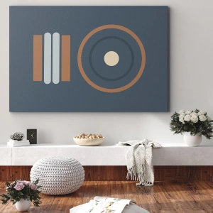 Impression sur toile - Image sur toile - Une composition géométrique avec des cercles et des rectangles aux couleurs sobres. - 50x70cm - Essence des choses - Décoration murale moderne pour le salon et la chambre ARTTOR