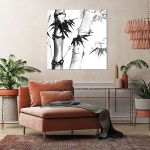 Impression sur toile - Image sur toile - Bambou aquarelle de style japonais sur fond blanc - 50x70cm - Gros plan sur l'orient - Décoration murale moderne pour le salon et la chambre ARTTOR