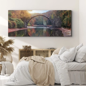 Impression sur toile - Image sur toile - Un pont de pierre dans un paysage d'automne sur une eau calme - 70x100cm - De l'autre cote du miroir - Décoration murale moderne pour le salon et la chambre ARTTOR