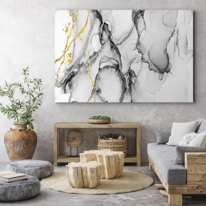 Impression sur toile - Image sur toile - Motifs abstraits en noir et blanc avec des accents dorés - 50x70cm - Composition à motif or - Décoration murale moderne pour le salon et la chambre ARTTOR