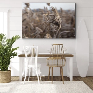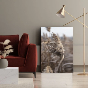 Impression sur toile - Image sur toile - Graminées délicates dans des tons beiges sur fond de nature - 50x70cm - Il est temps de s'envoler avec le vent - Décoration murale moderne pour le salon et la chambre ARTTOR