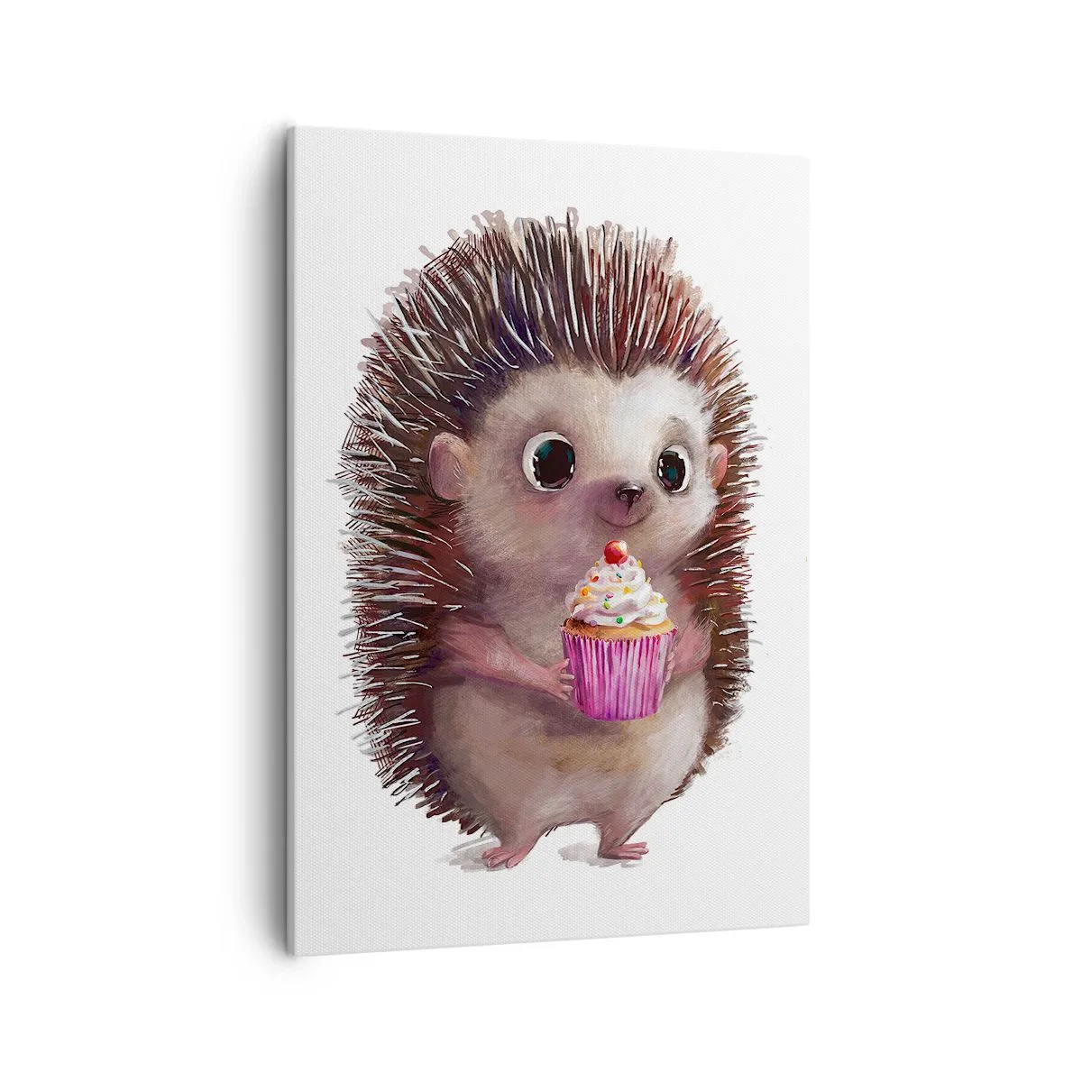 Impression sur toile - Image sur toile - Un hérisson mignon avec un cupcake - 50x70cm - La fête c'est tous les jours - Décoration murale moderne pour le salon et la chambre ARTTOR