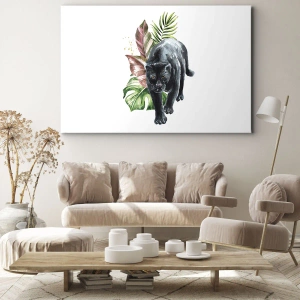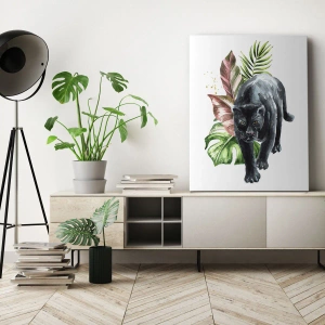 Impression sur toile - Image sur toile - Panthère noire entourée de feuilles tropicales - 50x70cm - Sauvagerie du coeur - Décoration murale moderne pour le salon et la chambre ARTTOR