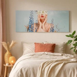 Impression sur toile - Image sur toile - Portrait d'une femme avec un motif floral sur fond bleu - 80x120cm - Femme - fleur - Décoration murale moderne pour le salon et la chambre ARTTOR