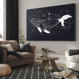 Impression sur toile - Image sur toile - Une illustration graphique d'une baleine dans un style de l'ère spatiale. - 80x120cm - Dans l'océan de l'univers - Décoration murale moderne pour le salon et la chambre ARTTOR