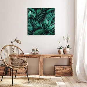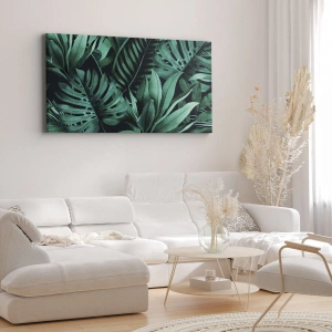 Impression sur toile - Image sur toile - Feuilles tropicales aux nuances de vert intense - 80x120cm - Profondeur du vert tropical - Décoration murale moderne pour le salon et la chambre ARTTOR