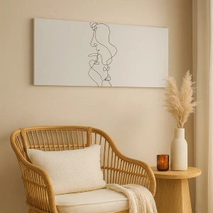 Impression sur toile - Image sur toile - Un dessin minimaliste de deux visages sur une seule ligne. - 70x100cm - Chaleur de désir renaissant - Décoration murale moderne pour le salon et la chambre ARTTOR