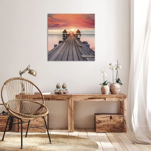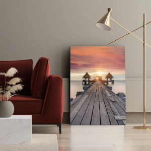 Impression sur toile - Image sur toile - Jetée en bois menant aux belvédères au coucher du soleil - 50x70cm - L'Ouest à l'Est - Décoration murale moderne pour le salon et la chambre ARTTOR