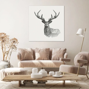 Impression sur toile - Image sur toile - Image géométrique d'un cerf dans un style minimaliste en noir et blanc - 50x70cm - Cerf dans un style cubique - Décoration murale moderne pour le salon et la chambre ARTTOR
