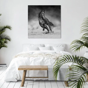 Impression sur toile - Image sur toile - Un cheval noir et blanc galopant sur le sable - 50x70cm - Digne de l'émir lui-même - Décoration murale moderne pour le salon et la chambre ARTTOR