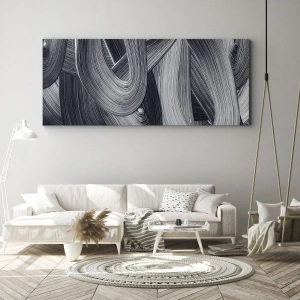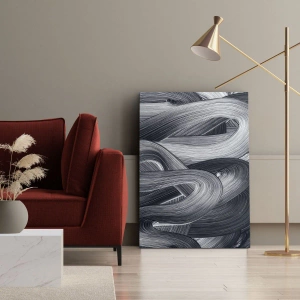 Impression sur toile - Image sur toile - Abstraction en noir et blanc avec des coups de pinceau dynamiques. - 80x120cm - La fluidité de la réalité - Décoration murale moderne pour le salon et la chambre ARTTOR