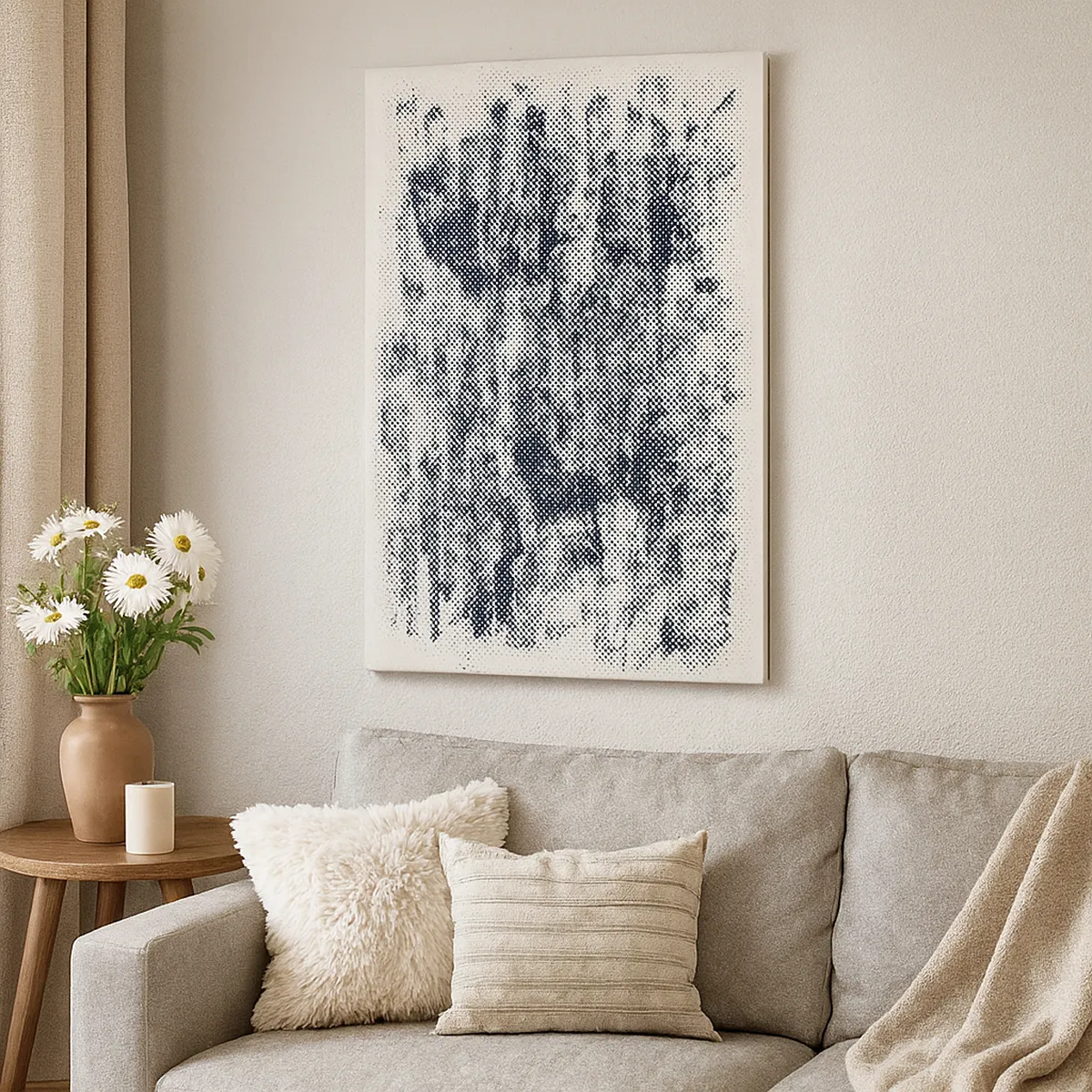 Nous utilisons des encres écologiques, inodores et durables avec une saturation de couleurs profonde. La technologie d’impression moderne place précisément l’impression tout en conservant la structure visible de la toile.