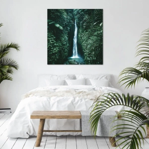 Impression sur toile - Image sur toile - Une cascade entourée d'une végétation tropicale dense - 80x120cm - Fontaine tropicale - Décoration murale moderne pour le salon et la chambre ARTTOR