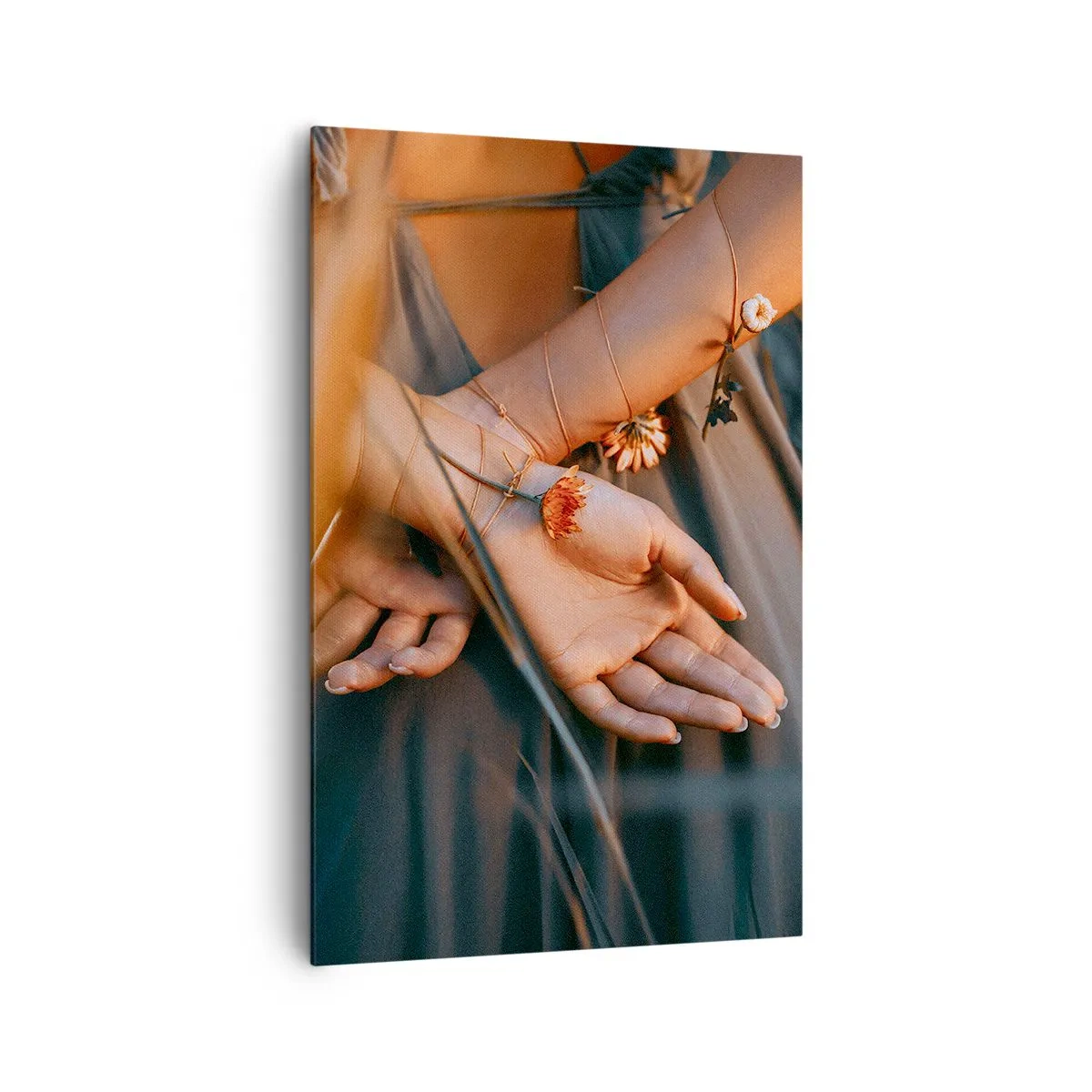 Impression sur toile - Image sur toile - Mains sensuelles avec des fleurs dans un cadre naturel - 80x120cm - Liée à la nature - Décoration murale moderne pour le salon et la chambre ARTTOR