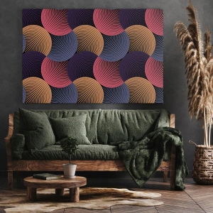 Impression sur toile - Image sur toile - Cercles géométriques dans des tons de rose, violet et or - 70x50cm - Dans un rythme circulaire - Décoration murale moderne pour le salon et la chambre ARTTOR