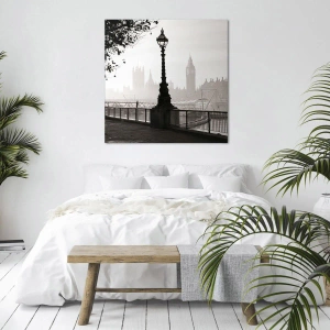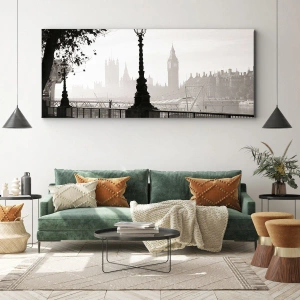 Impression sur toile - Image sur toile - Une vue monochrome de Big Ben et de la Tamise. - 100x70cm - Un matin londonien - Décoration murale moderne pour le salon et la chambre ARTTOR