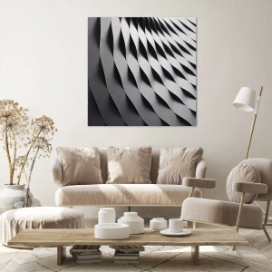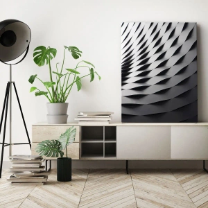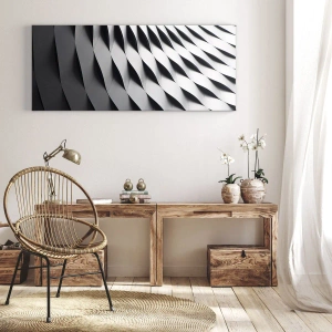 Tableau mural - À la surface des vagues - Motif géométrique abstrait dans les tons noir et blanc