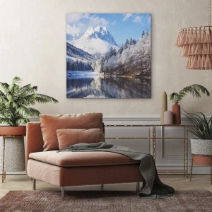 Le tableau « Garde-neige » représente un paysage de montagne hivernal pittoresque qui enchante par son harmonie et sa subtilité. Des arbres enneigés entourent un lac paisible, dont la surface reflète les majestueuses montagnes en arrière-plan. Cette impression sur toile est une œuvre d'art unique qui apporte une atmosphère de paix et d'élégance fraîche à votre intérieur, complétant parfaitement les intérieurs inspirés par la nature et un style minimaliste.