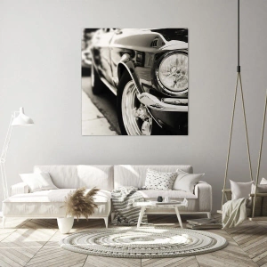 Ce tableau a été créé avec une attention particulière portée à chaque détail, comme en témoignent la reproduction parfaite de la surface, les reflets de lumière et les formes dynamiques du véhicule. Le jeu d'ombre et de lumière souligne la tridimensionnalité de la composition, lui conférant profondeur et caractère. C'est une proposition idéale pour ceux qui apprécient l'élégance et le style classique en décoration intérieure.