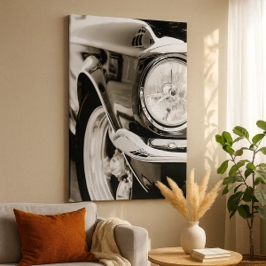 Impression sur toile - Image sur toile - Une voiture classique emblématique en noir et blanc élégant - 80x120cm - Brillance permanente - Décoration murale moderne pour le salon et la chambre ARTTOR