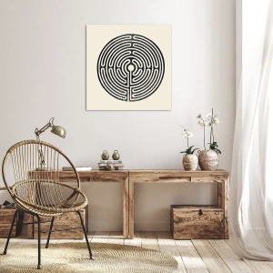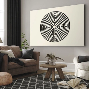 Impression sur toile - Image sur toile - Labyrinthe circulaire noir et blanc sur fond clair - 80x120cm - Ordre mystérieux - Décoration murale moderne pour le salon et la chambre ARTTOR