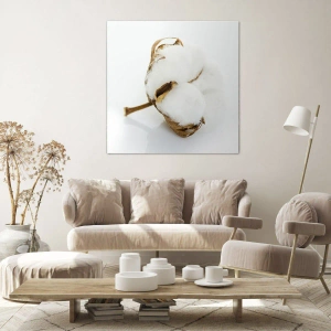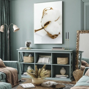 Impression sur toile - Image sur toile - Une branche de coton sur un fond clair dans une approche minimaliste - 100x70cm - Doux par nature - Décoration murale moderne pour le salon et la chambre ARTTOR