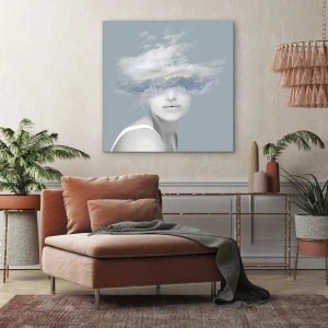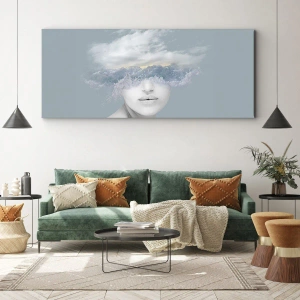Impression sur toile - Image sur toile - Portrait d'une femme avec son visage caché derrière les nuages et les vagues - 80x120cm - La tête dans les nuages - Décoration murale moderne pour le salon et la chambre ARTTOR